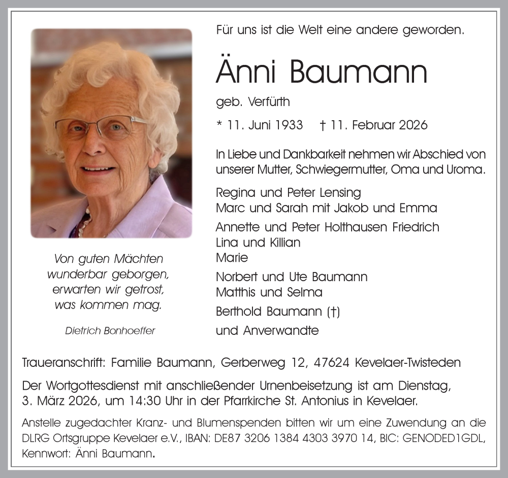 Hier finden Sie alle Traueranzeigen aus der Zeitung, die bisher für Änni Baumann erschienen sind. Weitere Traueranzeigen, die in der Zeitung erscheinen, werden hier ebenfalls aufgelistet