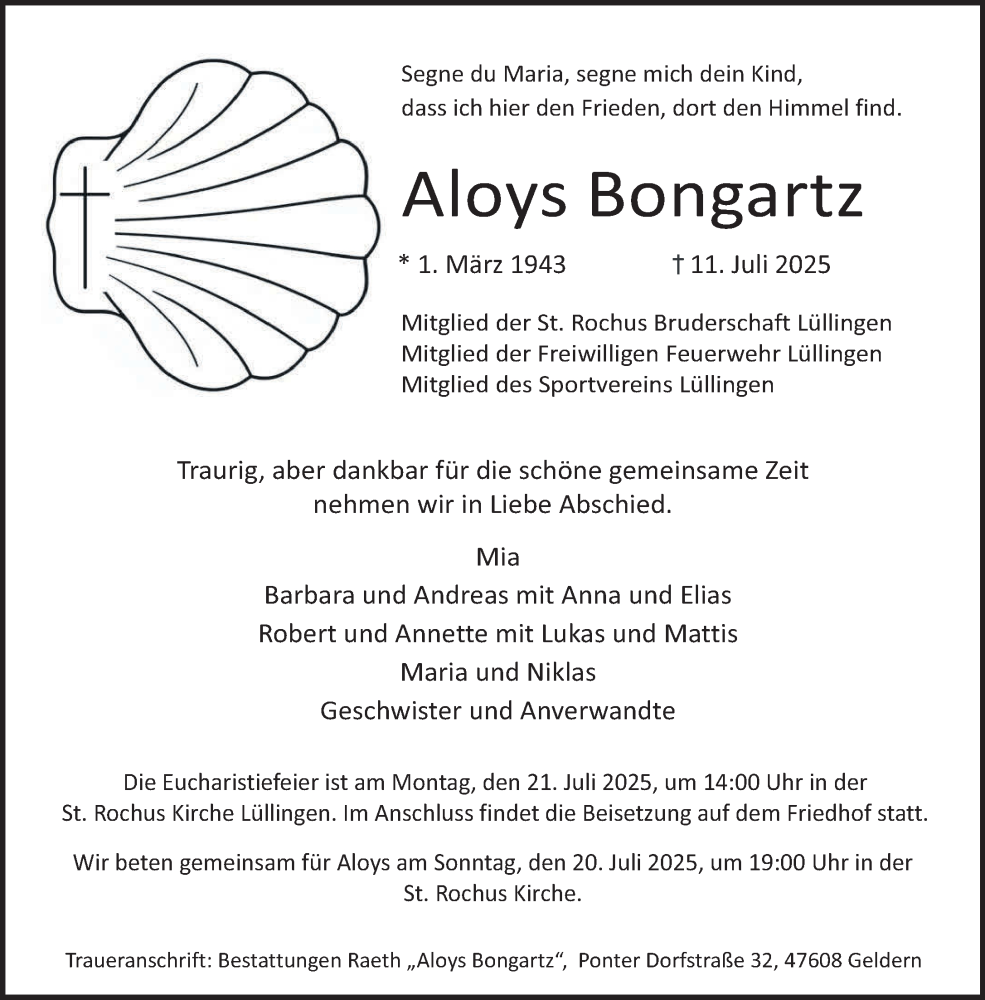 Hier finden Sie alle Traueranzeigen aus der Zeitung, die bisher für Aloys Bongartz erschienen sind. Weitere Traueranzeigen, die in der Zeitung erscheinen, werden hier ebenfalls aufgelistet