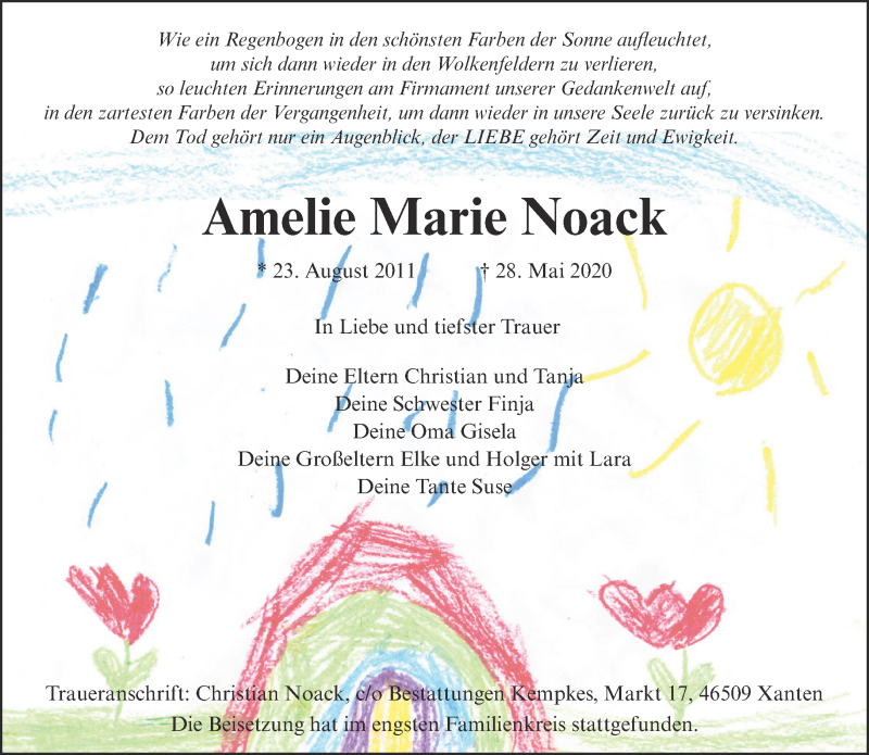 Hier finden Sie alle Traueranzeigen aus der Zeitung, die bisher für Amelie Marie Noack erschienen sind. Weitere Traueranzeigen, die in der Zeitung erscheinen, werden hier ebenfalls aufgelistet