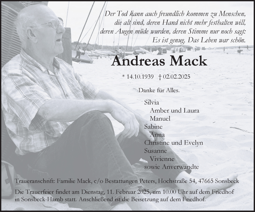 Hier finden Sie alle Traueranzeigen aus der Zeitung, die bisher für Andreas Mack erschienen sind. Weitere Traueranzeigen, die in der Zeitung erscheinen, werden hier ebenfalls aufgelistet