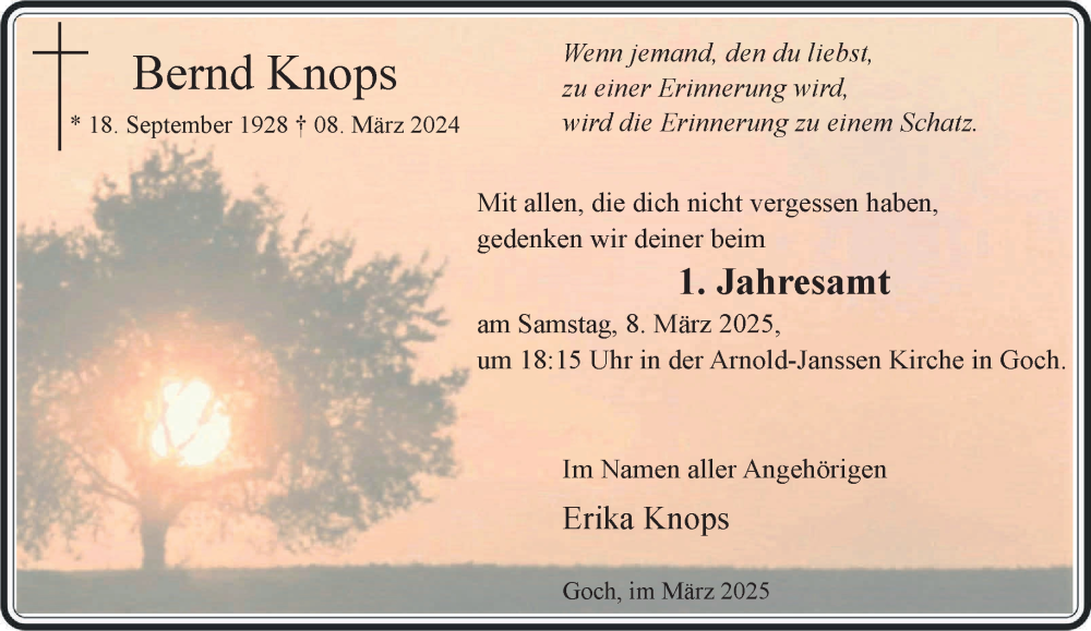 Hier finden Sie alle Traueranzeigen aus der Zeitung, die bisher für Bernd Knops erschienen sind. Weitere Traueranzeigen, die in der Zeitung erscheinen, werden hier ebenfalls aufgelistet