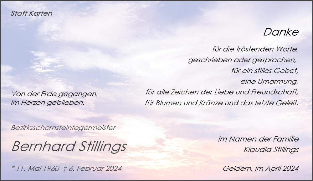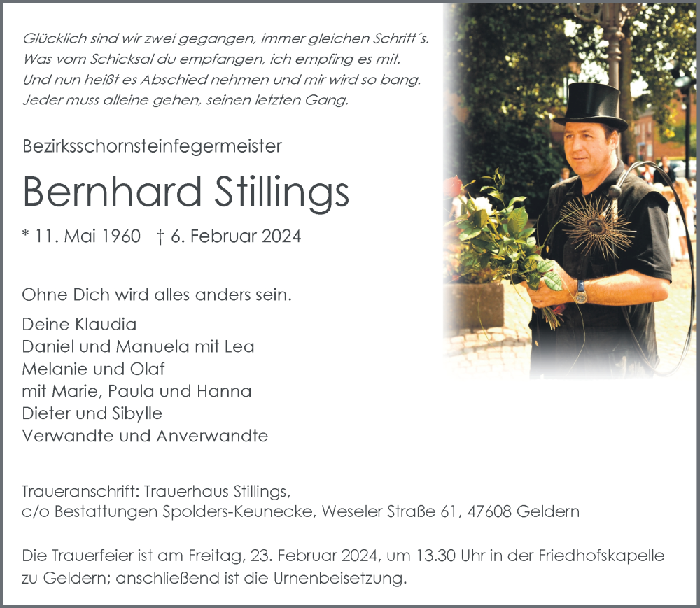 Hier finden Sie alle Traueranzeigen aus der Zeitung, die bisher für Bernhard Stillings erschienen sind. Weitere Traueranzeigen, die in der Zeitung erscheinen, werden hier ebenfalls aufgelistet
