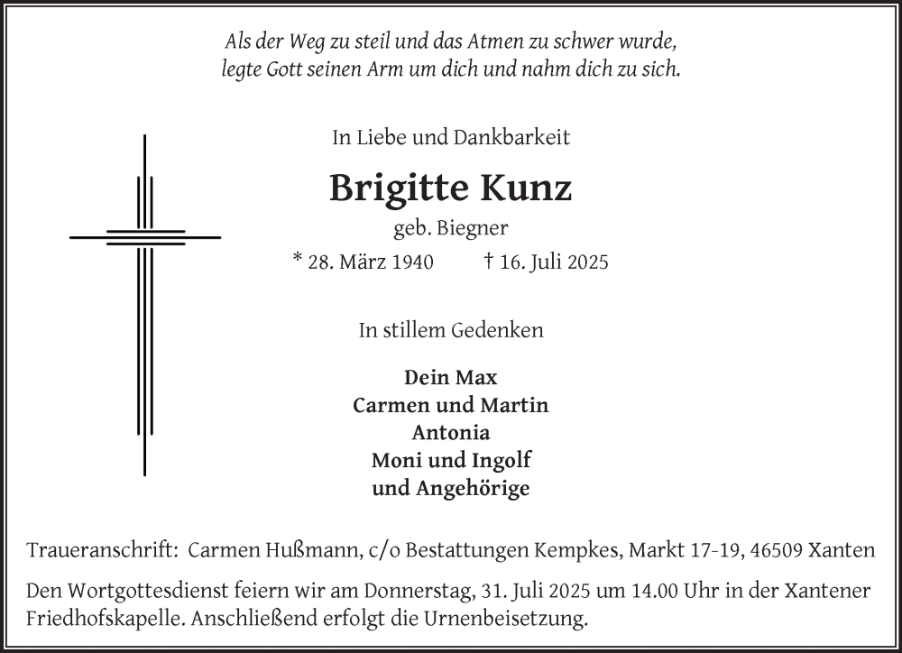 Hier finden Sie alle Traueranzeigen aus der Zeitung, die bisher für Brigitte Kunz erschienen sind. Weitere Traueranzeigen, die in der Zeitung erscheinen, werden hier ebenfalls aufgelistet