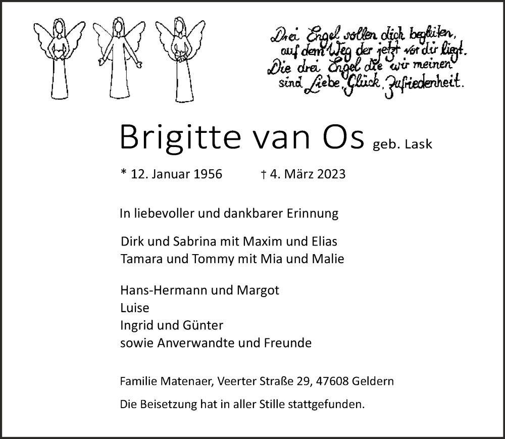 Hier finden Sie alle Traueranzeigen aus der Zeitung, die bisher für Brigitte van Os erschienen sind. Weitere Traueranzeigen, die in der Zeitung erscheinen, werden hier ebenfalls aufgelistet