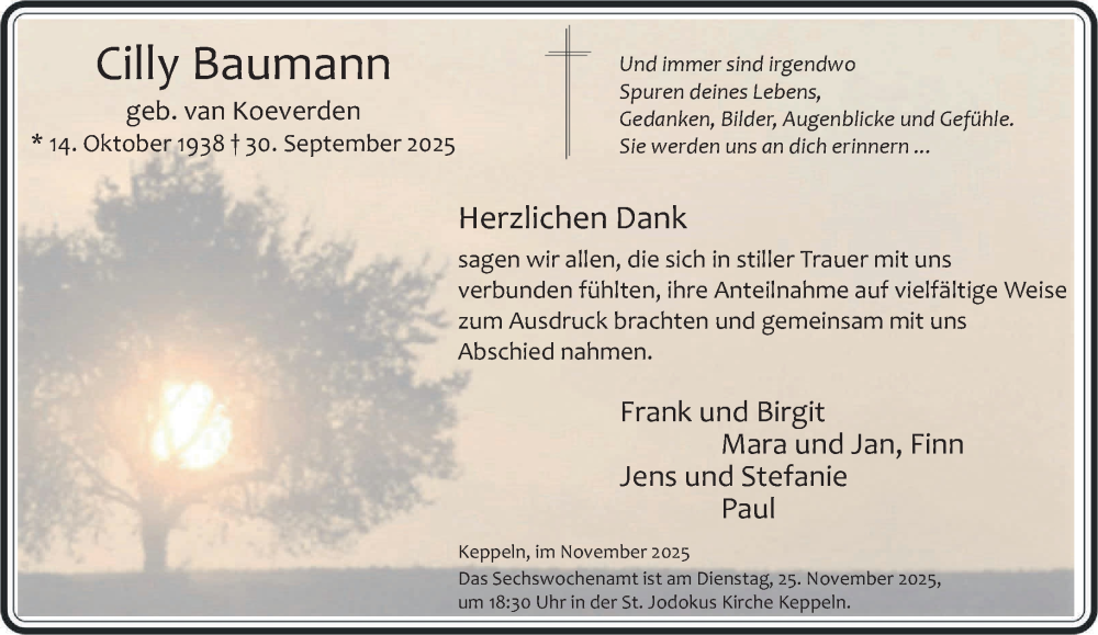 Hier finden Sie alle Traueranzeigen aus der Zeitung, die bisher für Cilly Baumann erschienen sind. Weitere Traueranzeigen, die in der Zeitung erscheinen, werden hier ebenfalls aufgelistet