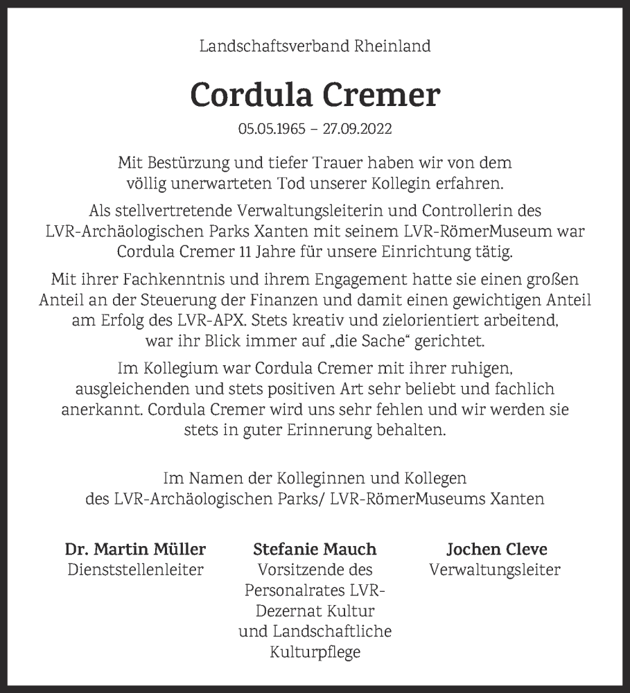 Hier finden Sie alle Traueranzeigen aus der Zeitung, die bisher für Cordula Cremer erschienen sind. Weitere Traueranzeigen, die in der Zeitung erscheinen, werden hier ebenfalls aufgelistet