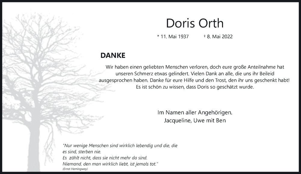 Hier finden Sie alle Traueranzeigen aus der Zeitung, die bisher für Doris Orth erschienen sind. Weitere Traueranzeigen, die in der Zeitung erscheinen, werden hier ebenfalls aufgelistet