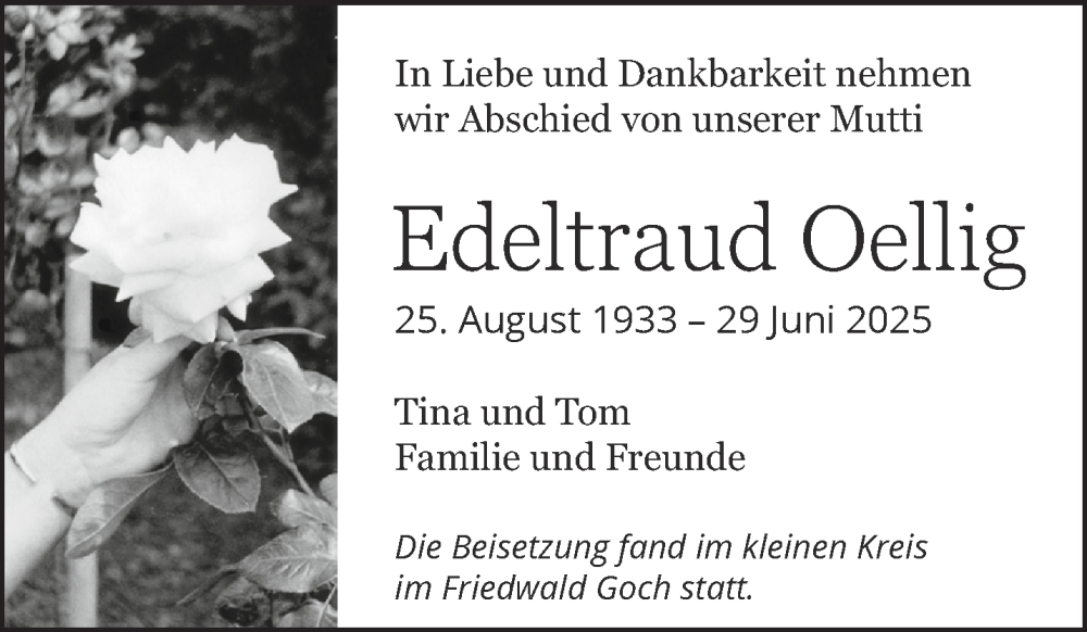 Hier finden Sie alle Traueranzeigen aus der Zeitung, die bisher für Edeltraud Oellig erschienen sind. Weitere Traueranzeigen, die in der Zeitung erscheinen, werden hier ebenfalls aufgelistet