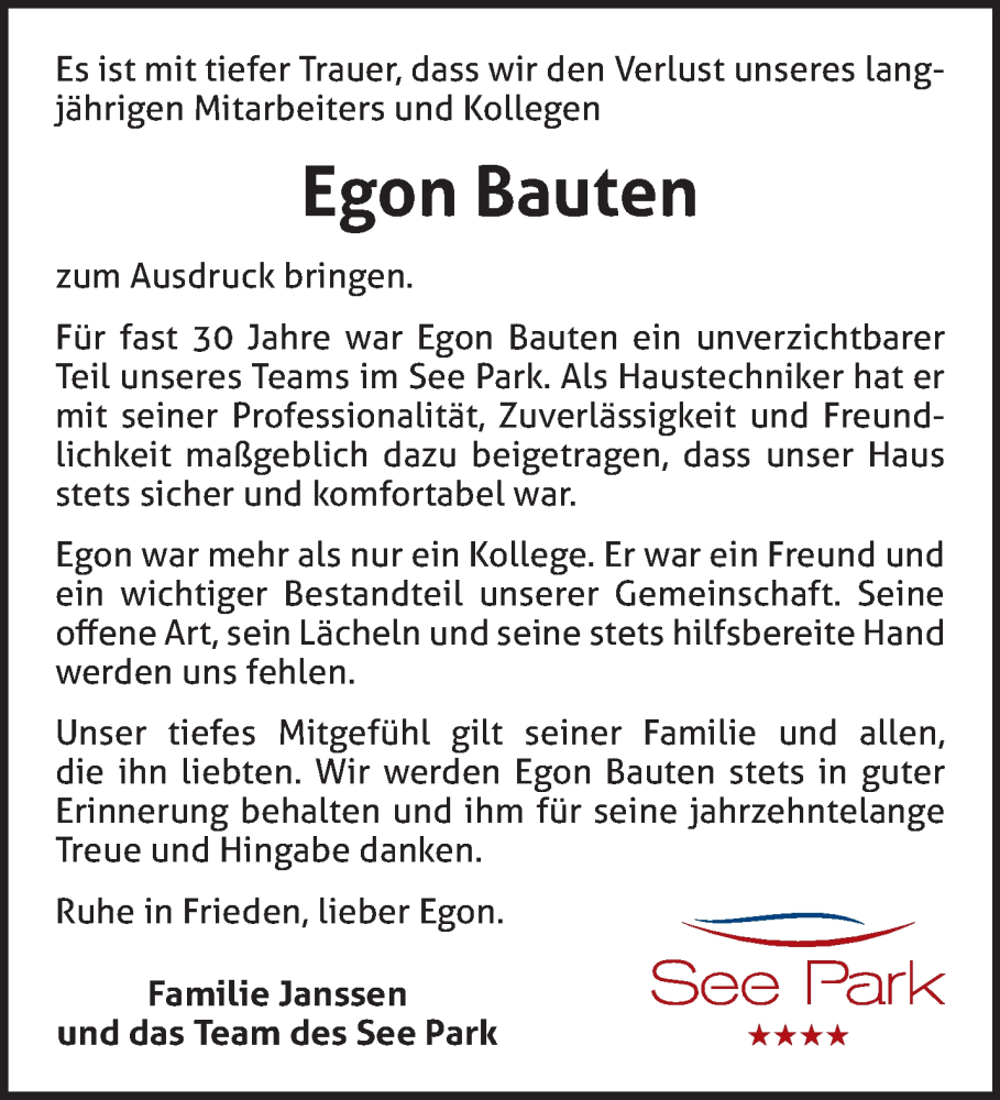 Hier finden Sie alle Traueranzeigen aus der Zeitung, die bisher für Egon Bauten erschienen sind. Weitere Traueranzeigen, die in der Zeitung erscheinen, werden hier ebenfalls aufgelistet