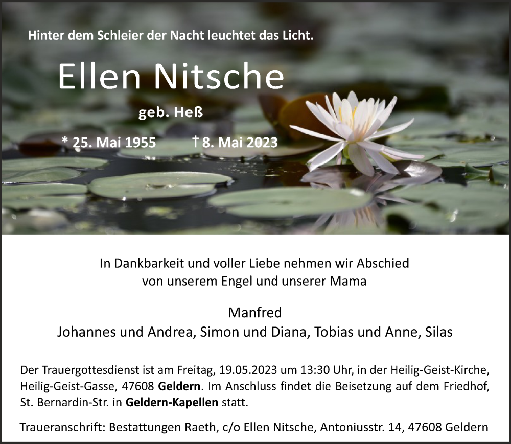 Hier finden Sie alle Traueranzeigen aus der Zeitung, die bisher für Ellen Nitsche erschienen sind. Weitere Traueranzeigen, die in der Zeitung erscheinen, werden hier ebenfalls aufgelistet