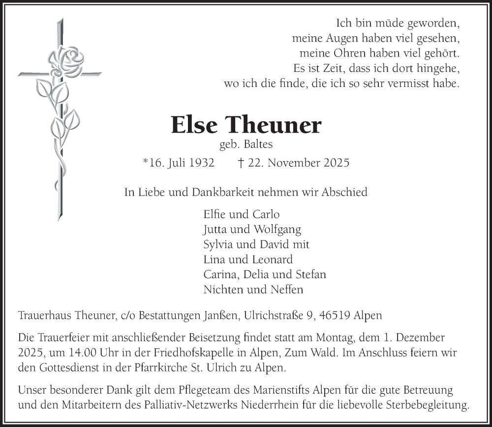 Hier finden Sie alle Traueranzeigen aus der Zeitung, die bisher für Else Theuner erschienen sind. Weitere Traueranzeigen, die in der Zeitung erscheinen, werden hier ebenfalls aufgelistet