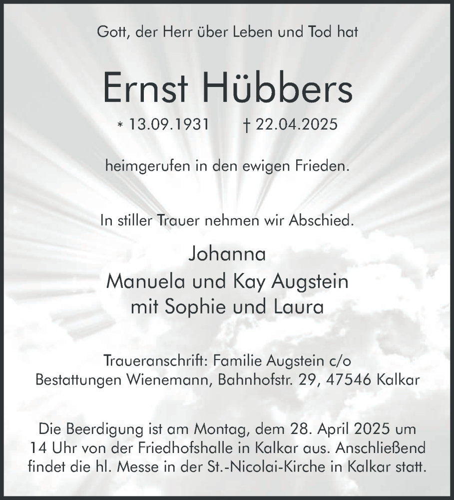 Hier finden Sie alle Traueranzeigen aus der Zeitung, die bisher für Ernst Hübbers erschienen sind. Weitere Traueranzeigen, die in der Zeitung erscheinen, werden hier ebenfalls aufgelistet