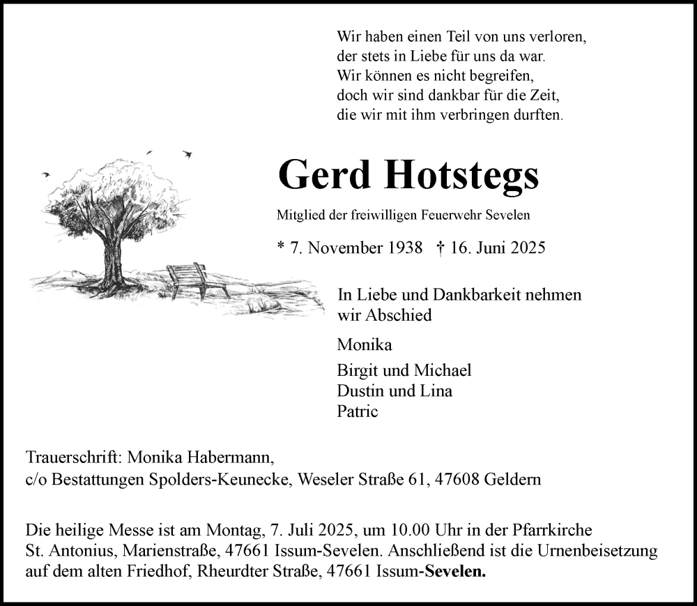 Hier finden Sie alle Traueranzeigen aus der Zeitung, die bisher für Gerd Hotstegs erschienen sind. Weitere Traueranzeigen, die in der Zeitung erscheinen, werden hier ebenfalls aufgelistet