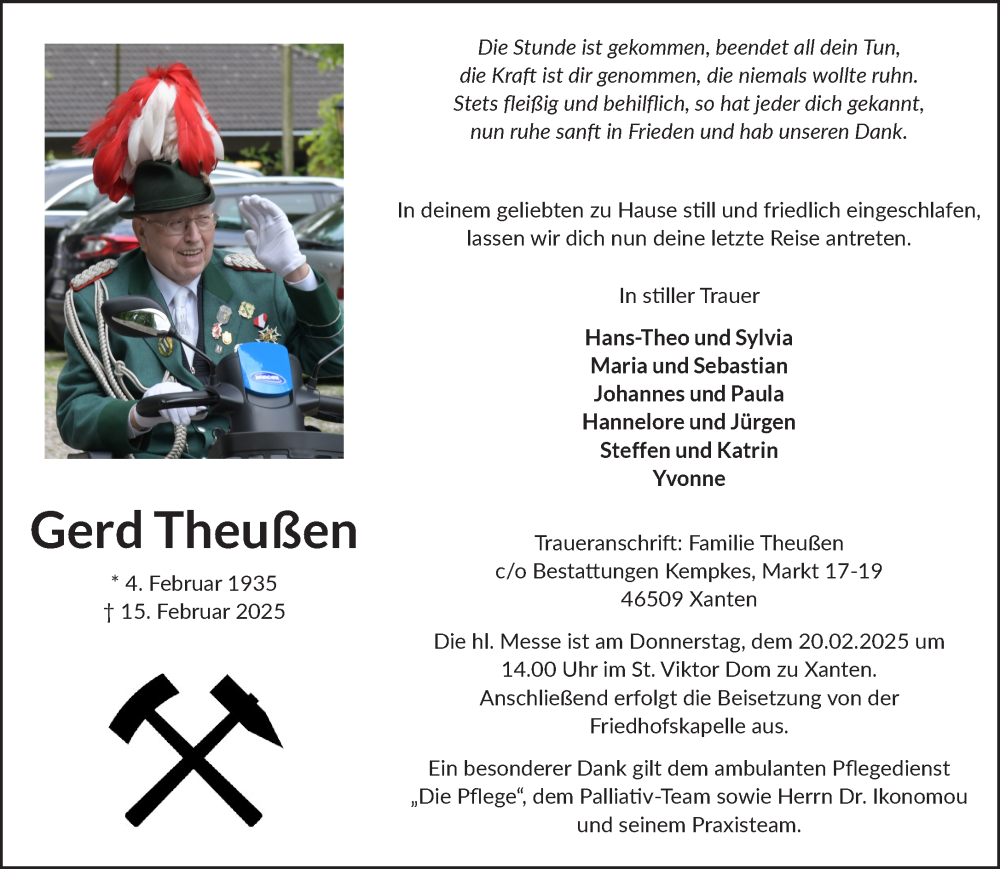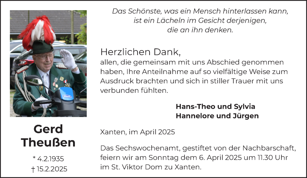 Hier finden Sie alle Traueranzeigen aus der Zeitung, die bisher für Gerd Theußen erschienen sind. Weitere Traueranzeigen, die in der Zeitung erscheinen, werden hier ebenfalls aufgelistet