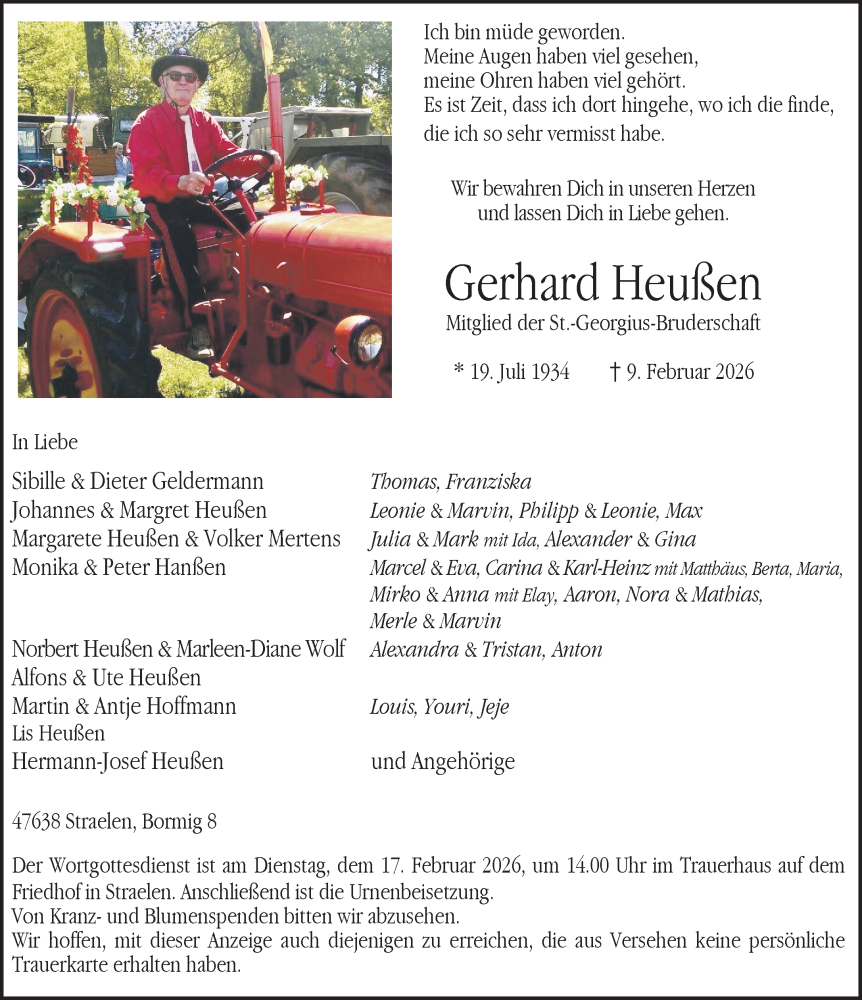 Hier finden Sie alle Traueranzeigen aus der Zeitung, die bisher für Gerhard Heußen erschienen sind. Weitere Traueranzeigen, die in der Zeitung erscheinen, werden hier ebenfalls aufgelistet