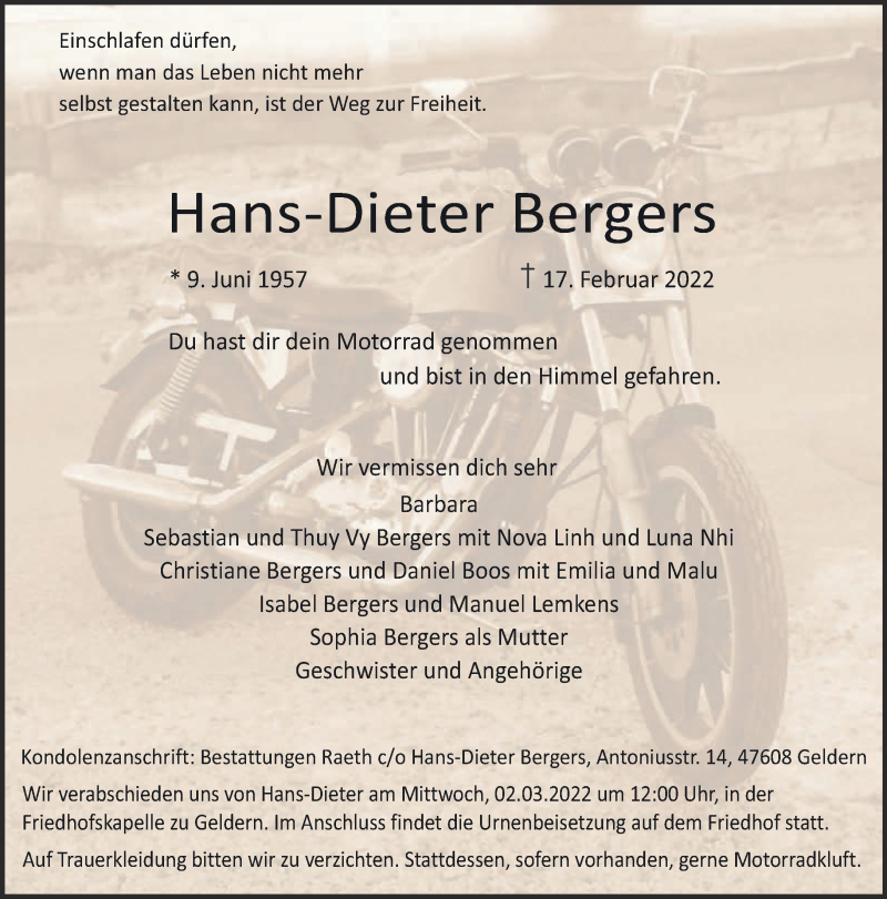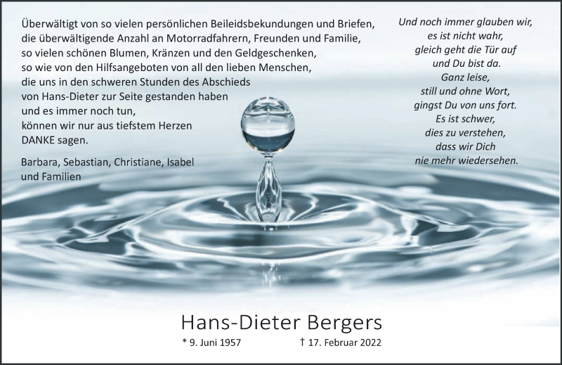 Hier finden Sie alle Traueranzeigen aus der Zeitung, die bisher für Hans-Dieter Bergers erschienen sind. Weitere Traueranzeigen, die in der Zeitung erscheinen, werden hier ebenfalls aufgelistet