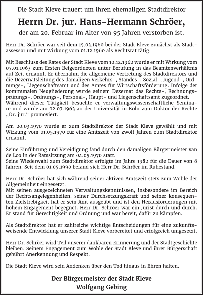 Hier finden Sie alle Traueranzeigen aus der Zeitung, die bisher für Hans-Hermann Schröer erschienen sind. Weitere Traueranzeigen, die in der Zeitung erscheinen, werden hier ebenfalls aufgelistet