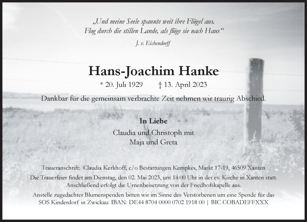 Hier finden Sie alle Traueranzeigen aus der Zeitung, die bisher für Hans-Joachim Hanke erschienen sind. Weitere Traueranzeigen, die in der Zeitung erscheinen, werden hier ebenfalls aufgelistet