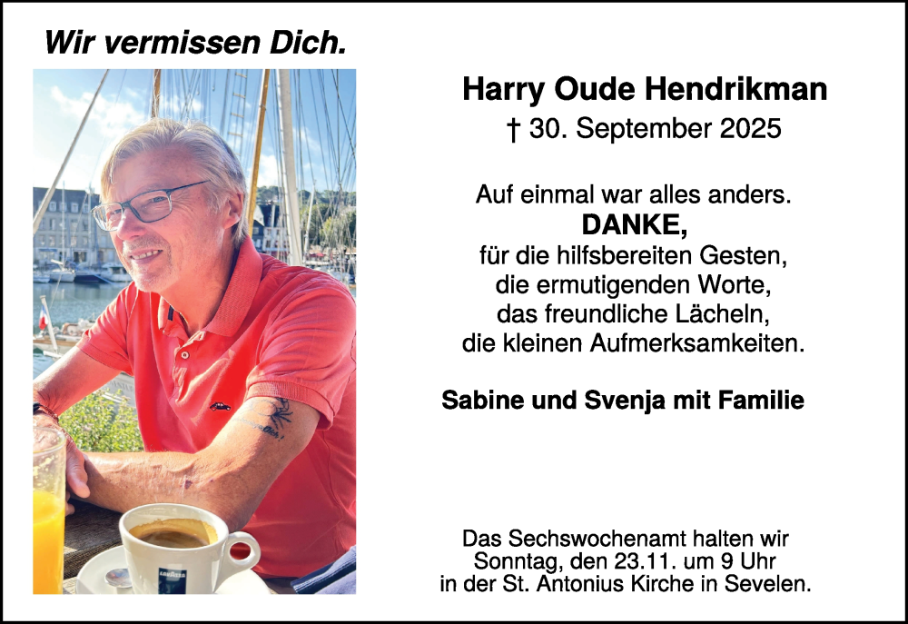 Hier finden Sie alle Traueranzeigen aus der Zeitung, die bisher für Harry Oude Hendrikman erschienen sind. Weitere Traueranzeigen, die in der Zeitung erscheinen, werden hier ebenfalls aufgelistet