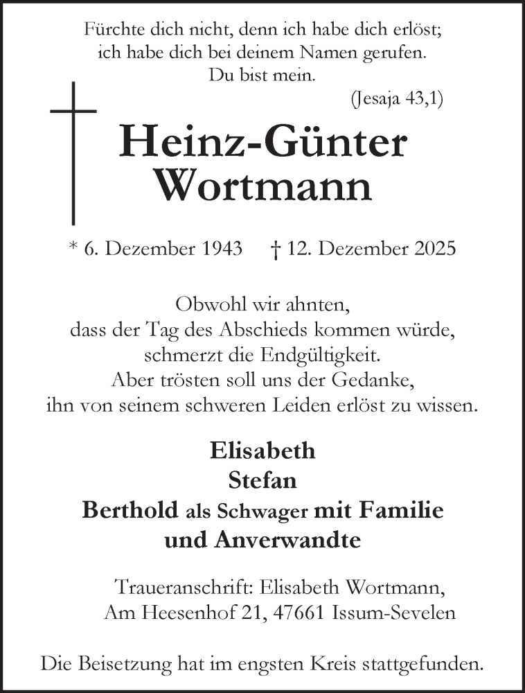 Hier finden Sie alle Traueranzeigen aus der Zeitung, die bisher für Heinz-Günter Wortmann erschienen sind. Weitere Traueranzeigen, die in der Zeitung erscheinen, werden hier ebenfalls aufgelistet