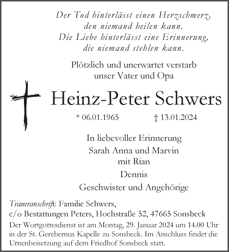 Hier finden Sie alle Traueranzeigen aus der Zeitung, die bisher für Heinz-Peter Schwers erschienen sind. Weitere Traueranzeigen, die in der Zeitung erscheinen, werden hier ebenfalls aufgelistet