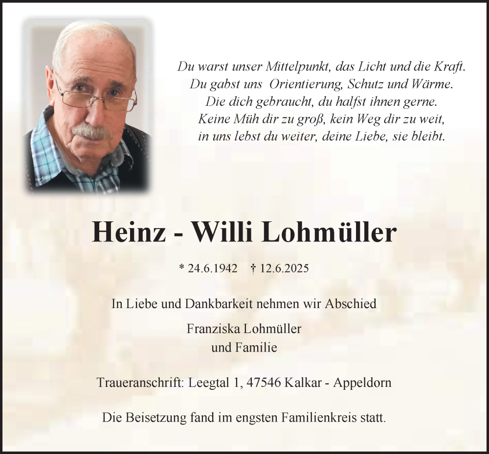 Hier finden Sie alle Traueranzeigen aus der Zeitung, die bisher für Heinz-Willi Lohmüller erschienen sind. Weitere Traueranzeigen, die in der Zeitung erscheinen, werden hier ebenfalls aufgelistet