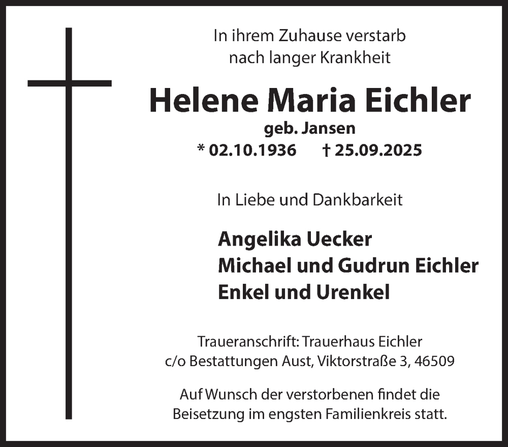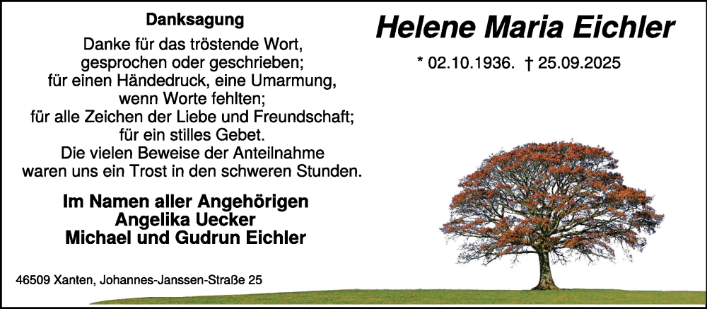 Hier finden Sie alle Traueranzeigen aus der Zeitung, die bisher für Helene Maria Eichler erschienen sind. Weitere Traueranzeigen, die in der Zeitung erscheinen, werden hier ebenfalls aufgelistet