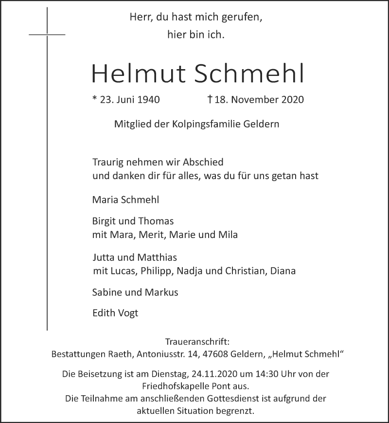 Hier finden Sie alle Traueranzeigen aus der Zeitung, die bisher für Helmut Schmehl erschienen sind. Weitere Traueranzeigen, die in der Zeitung erscheinen, werden hier ebenfalls aufgelistet