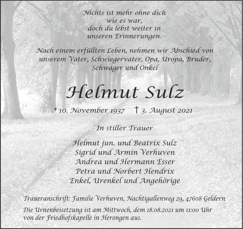 Hier finden Sie alle Traueranzeigen aus der Zeitung, die bisher für Helmut Sulz erschienen sind. Weitere Traueranzeigen, die in der Zeitung erscheinen, werden hier ebenfalls aufgelistet