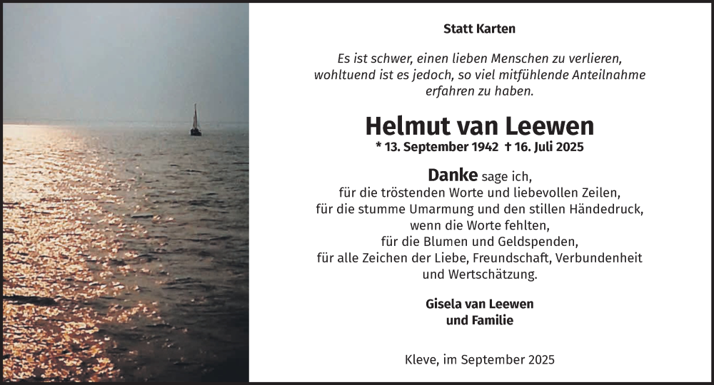 Hier finden Sie alle Traueranzeigen aus der Zeitung, die bisher für Helmut van Leewen erschienen sind. Weitere Traueranzeigen, die in der Zeitung erscheinen, werden hier ebenfalls aufgelistet