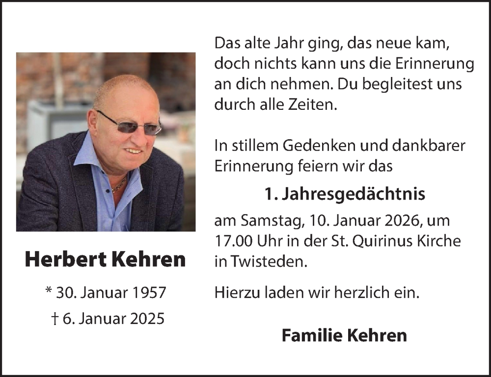 Hier finden Sie alle Traueranzeigen aus der Zeitung, die bisher für Herbert Kehren erschienen sind. Weitere Traueranzeigen, die in der Zeitung erscheinen, werden hier ebenfalls aufgelistet