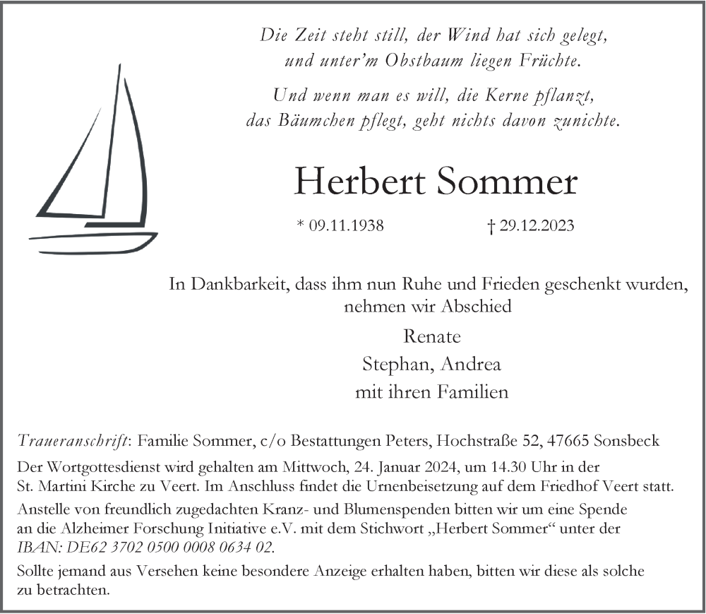 Hier finden Sie alle Traueranzeigen aus der Zeitung, die bisher für Herbert Sommer erschienen sind. Weitere Traueranzeigen, die in der Zeitung erscheinen, werden hier ebenfalls aufgelistet