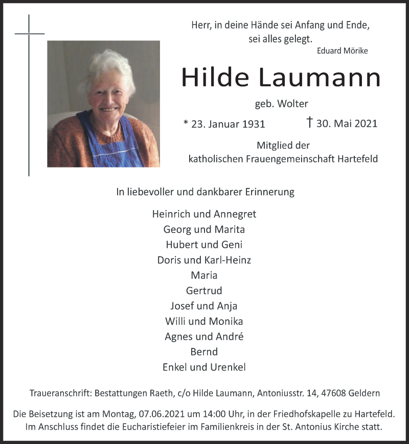 Hier finden Sie alle Traueranzeigen aus der Zeitung, die bisher für Hilde Laumann erschienen sind. Weitere Traueranzeigen, die in der Zeitung erscheinen, werden hier ebenfalls aufgelistet