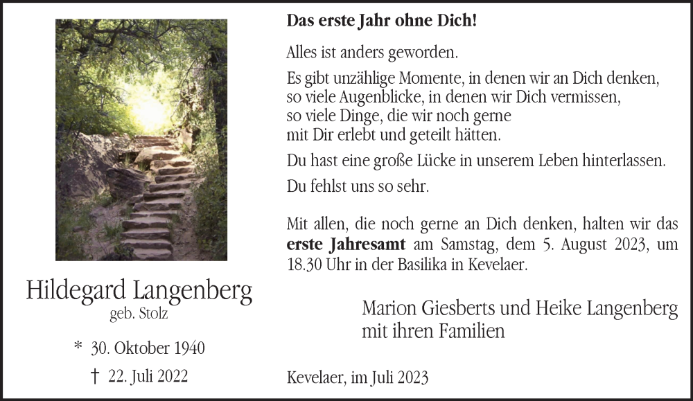Hier finden Sie alle Traueranzeigen aus der Zeitung, die bisher für Hildegard Langenberg erschienen sind. Weitere Traueranzeigen, die in der Zeitung erscheinen, werden hier ebenfalls aufgelistet