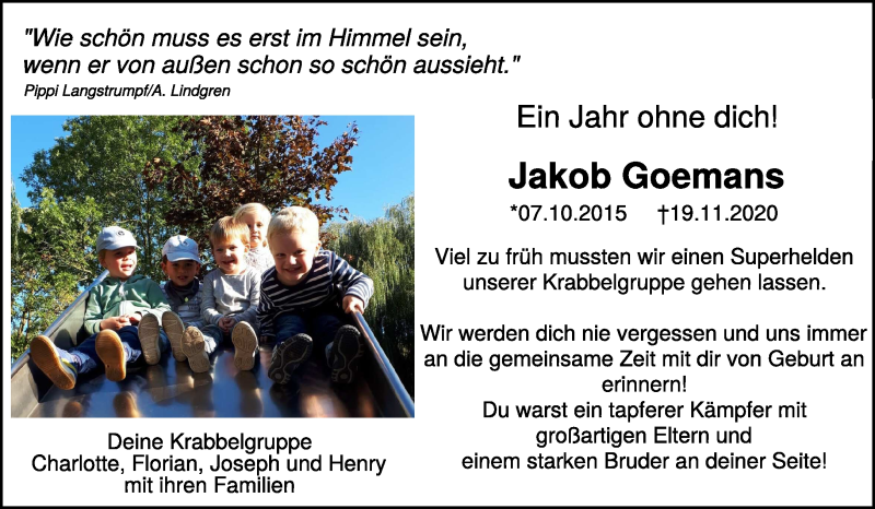 Hier finden Sie alle Traueranzeigen aus der Zeitung, die bisher für Jakob Goemans erschienen sind. Weitere Traueranzeigen, die in der Zeitung erscheinen, werden hier ebenfalls aufgelistet