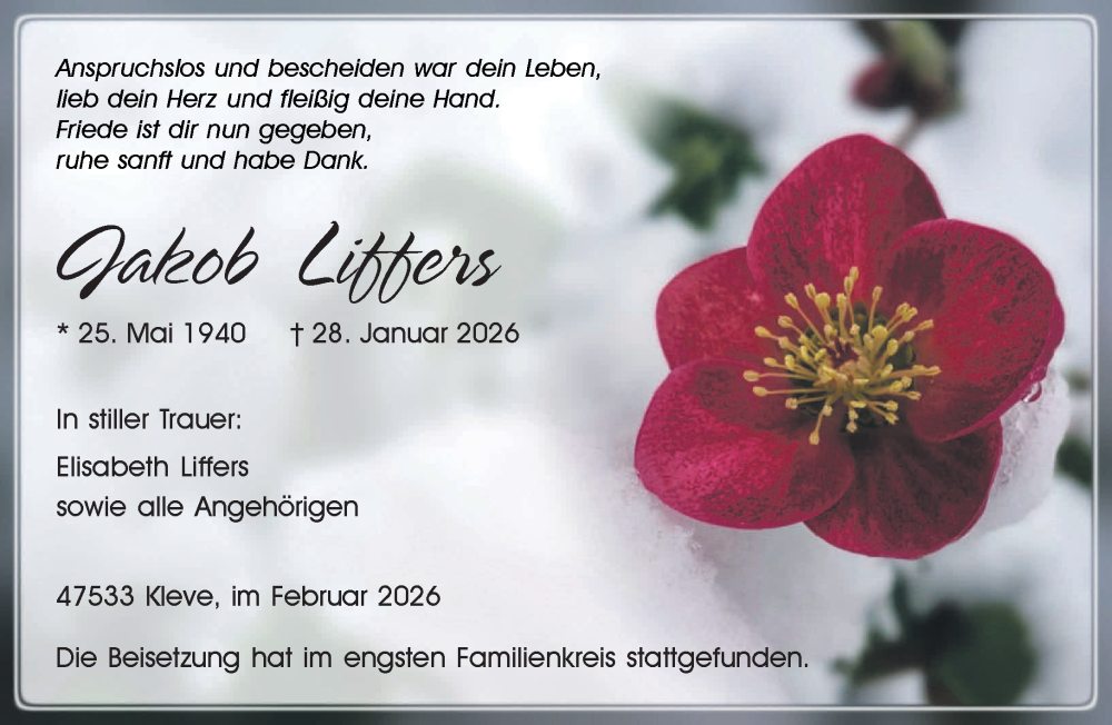 Hier finden Sie alle Traueranzeigen aus der Zeitung, die bisher für Jakob Liffers erschienen sind. Weitere Traueranzeigen, die in der Zeitung erscheinen, werden hier ebenfalls aufgelistet