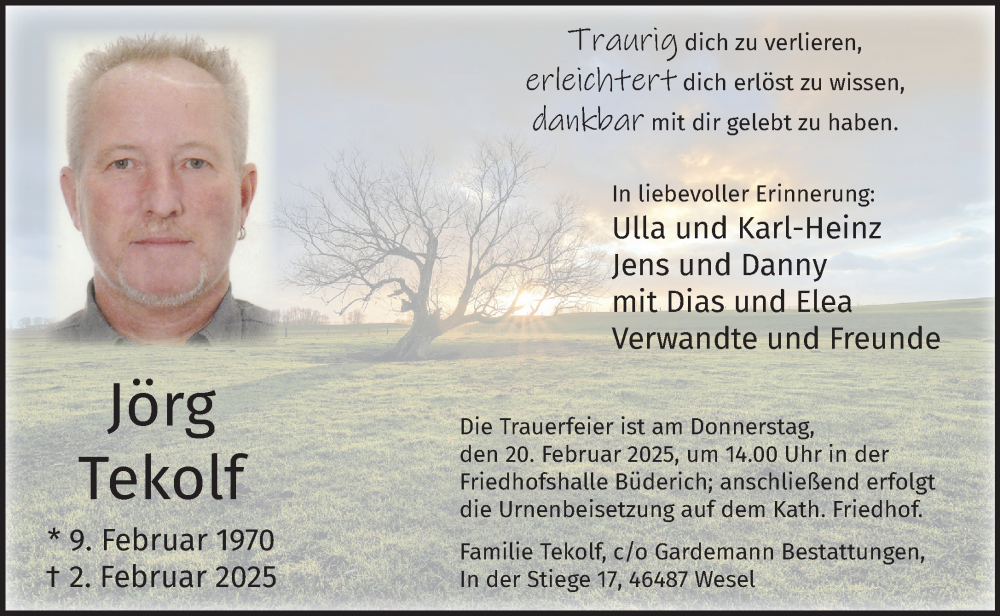 Hier finden Sie alle Traueranzeigen aus der Zeitung, die bisher für Jörg Tekolf erschienen sind. Weitere Traueranzeigen, die in der Zeitung erscheinen, werden hier ebenfalls aufgelistet