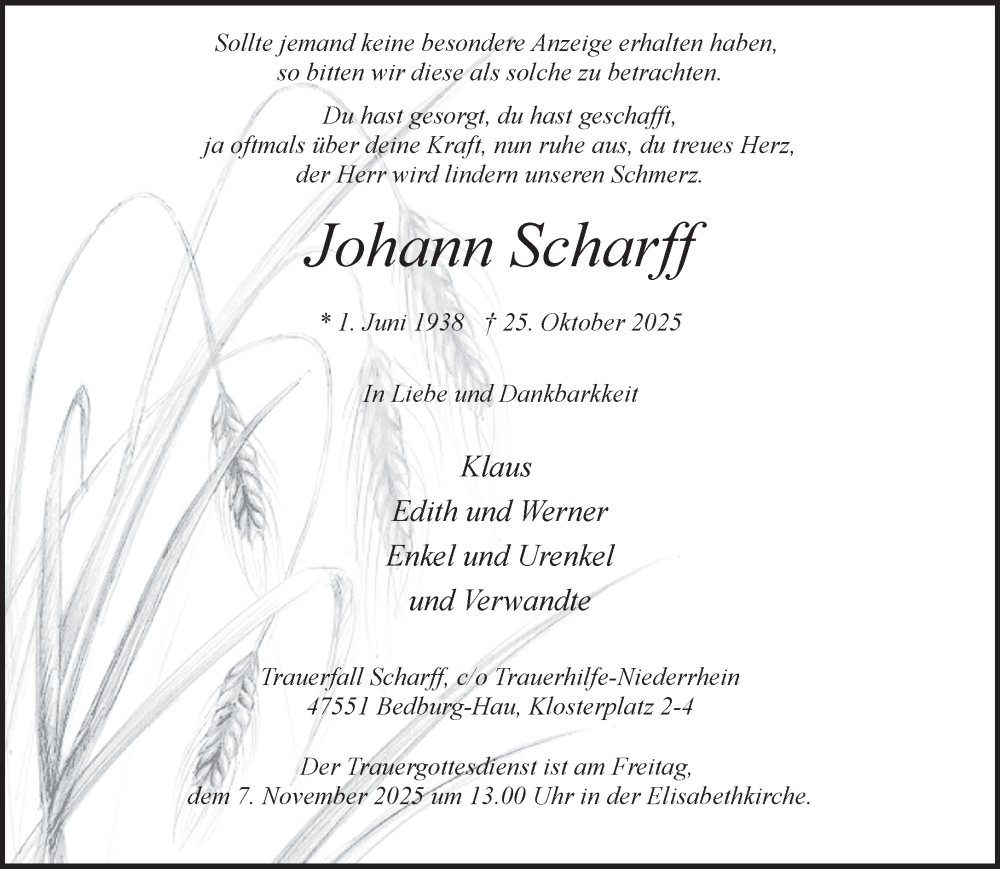Hier finden Sie alle Traueranzeigen aus der Zeitung, die bisher für Johann Scharff erschienen sind. Weitere Traueranzeigen, die in der Zeitung erscheinen, werden hier ebenfalls aufgelistet