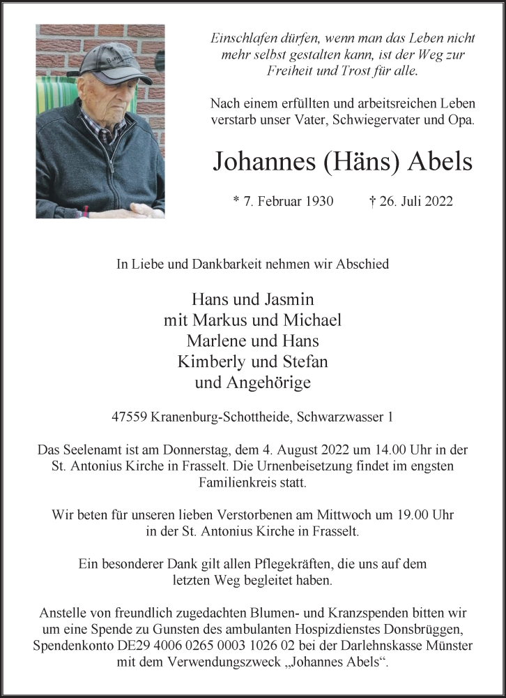 Hier finden Sie alle Traueranzeigen aus der Zeitung, die bisher für Johannes Abels erschienen sind. Weitere Traueranzeigen, die in der Zeitung erscheinen, werden hier ebenfalls aufgelistet