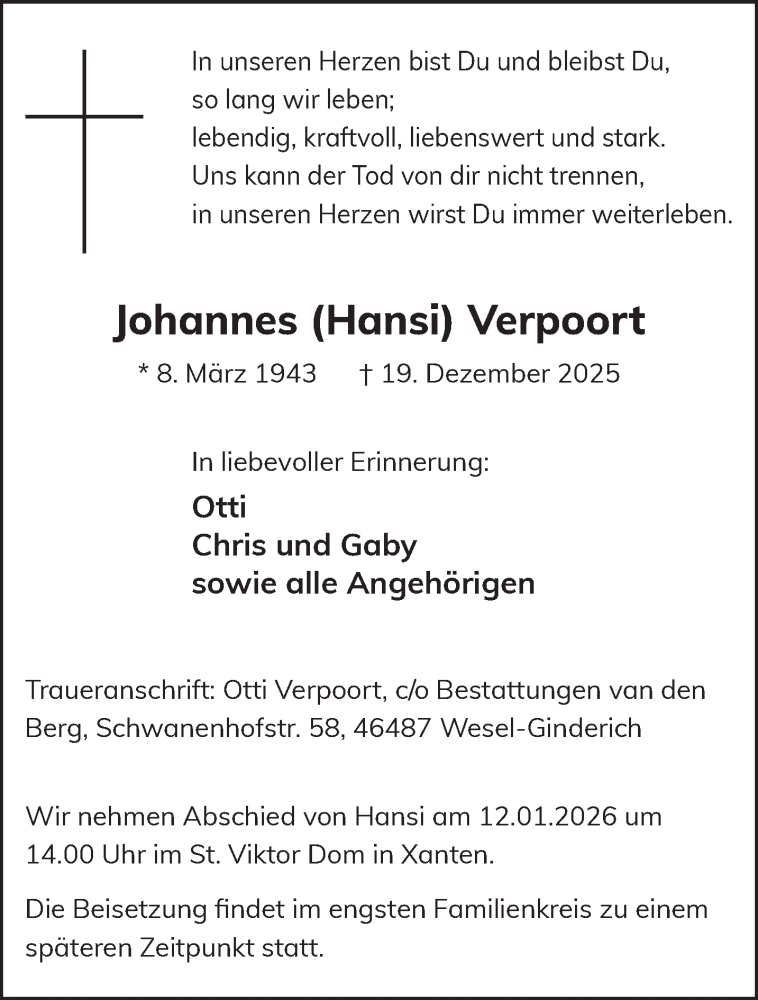 Hier finden Sie alle Traueranzeigen aus der Zeitung, die bisher für Johannes Verpoort erschienen sind. Weitere Traueranzeigen, die in der Zeitung erscheinen, werden hier ebenfalls aufgelistet