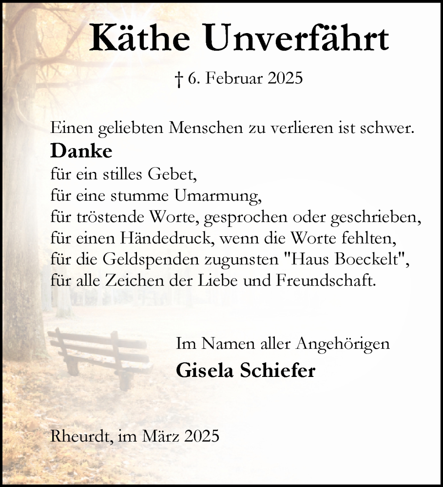 Hier finden Sie alle Traueranzeigen aus der Zeitung, die bisher für Käthe Unverfährt erschienen sind. Weitere Traueranzeigen, die in der Zeitung erscheinen, werden hier ebenfalls aufgelistet