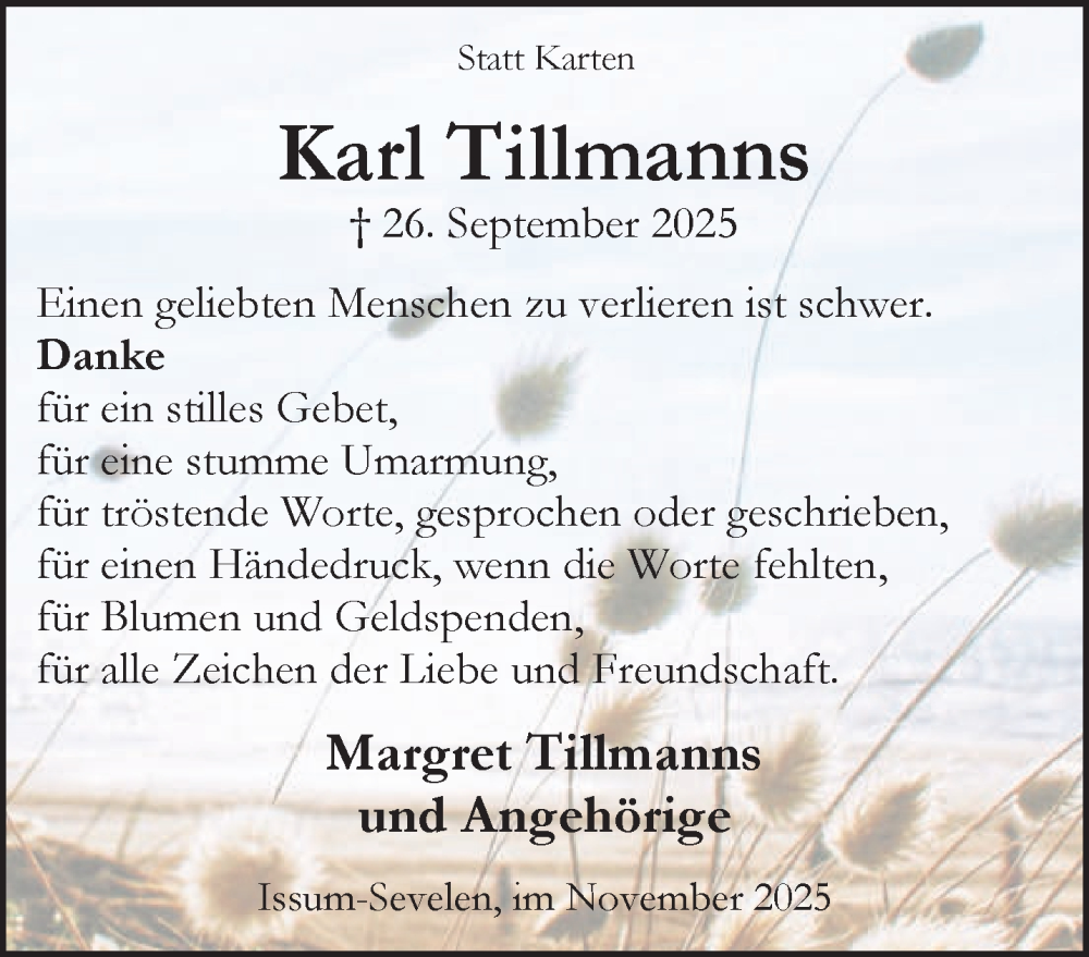 Hier finden Sie alle Traueranzeigen aus der Zeitung, die bisher für Karl Tillmanns erschienen sind. Weitere Traueranzeigen, die in der Zeitung erscheinen, werden hier ebenfalls aufgelistet
