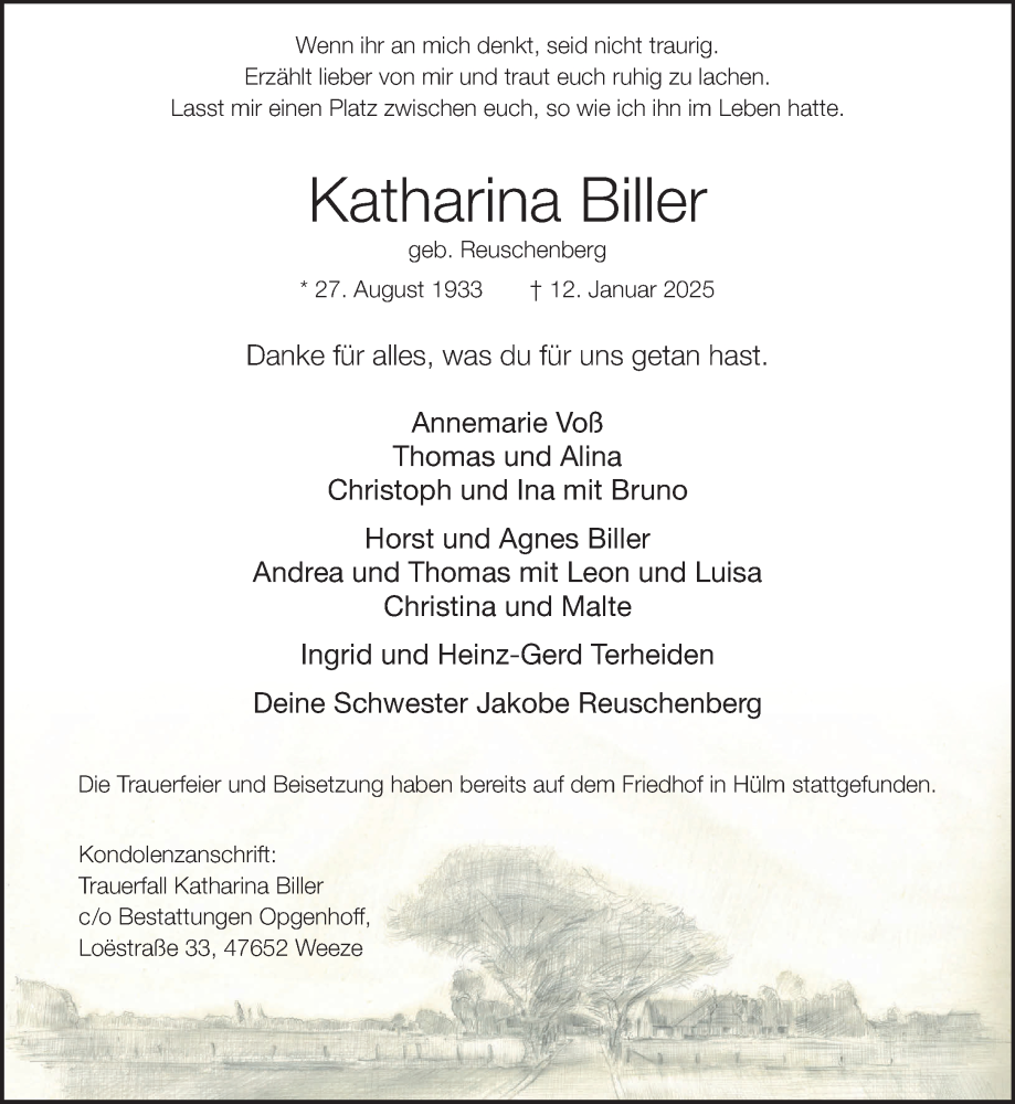 Hier finden Sie alle Traueranzeigen aus der Zeitung, die bisher für Katharina Biller erschienen sind. Weitere Traueranzeigen, die in der Zeitung erscheinen, werden hier ebenfalls aufgelistet