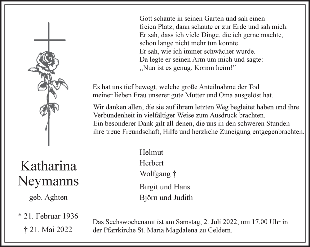 Hier finden Sie alle Traueranzeigen aus der Zeitung, die bisher für Katharina Neymanns erschienen sind. Weitere Traueranzeigen, die in der Zeitung erscheinen, werden hier ebenfalls aufgelistet