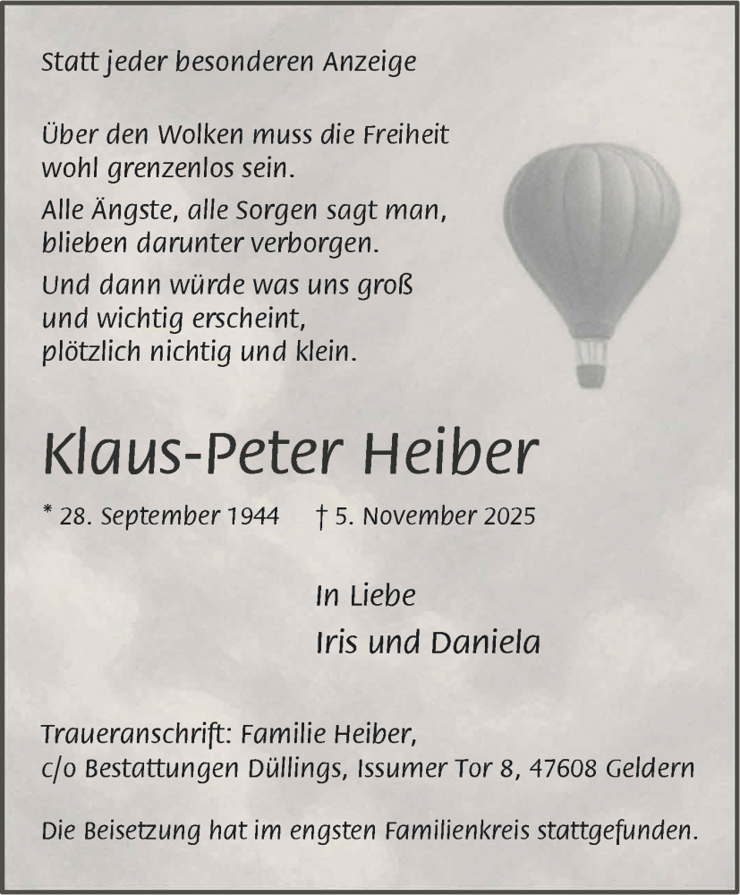 Hier finden Sie alle Traueranzeigen aus der Zeitung, die bisher für Klaus-Peter Heiber erschienen sind. Weitere Traueranzeigen, die in der Zeitung erscheinen, werden hier ebenfalls aufgelistet