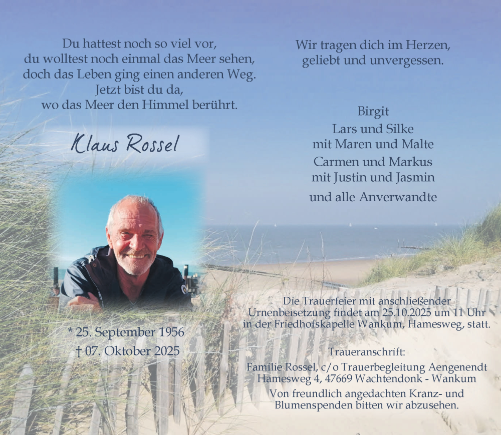 Hier finden Sie alle Traueranzeigen aus der Zeitung, die bisher für Klaus Rossel erschienen sind. Weitere Traueranzeigen, die in der Zeitung erscheinen, werden hier ebenfalls aufgelistet