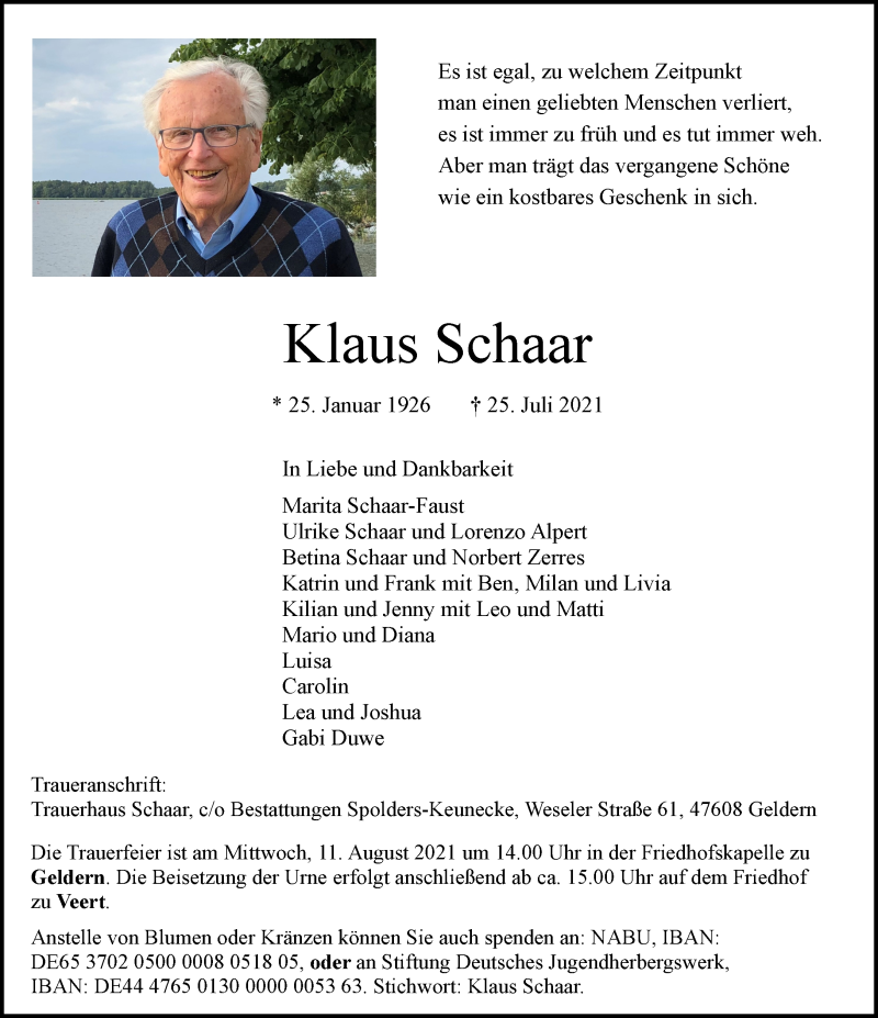 Hier finden Sie alle Traueranzeigen aus der Zeitung, die bisher für Klaus Schaar erschienen sind. Weitere Traueranzeigen, die in der Zeitung erscheinen, werden hier ebenfalls aufgelistet