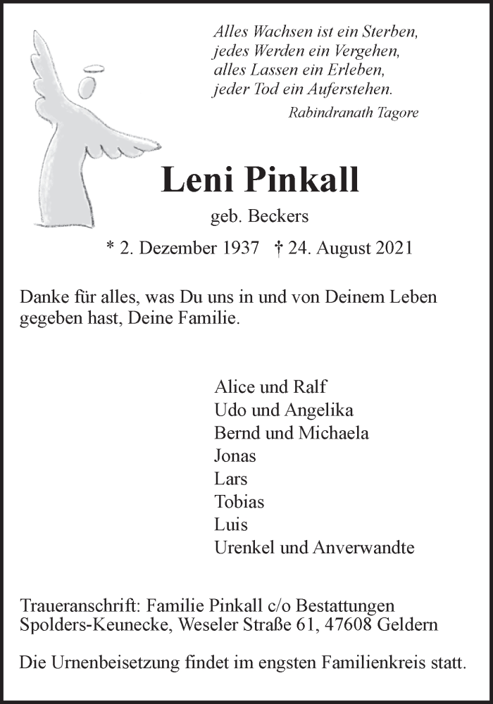 Hier finden Sie alle Traueranzeigen aus der Zeitung, die bisher für Leni Pinkall erschienen sind. Weitere Traueranzeigen, die in der Zeitung erscheinen, werden hier ebenfalls aufgelistet
