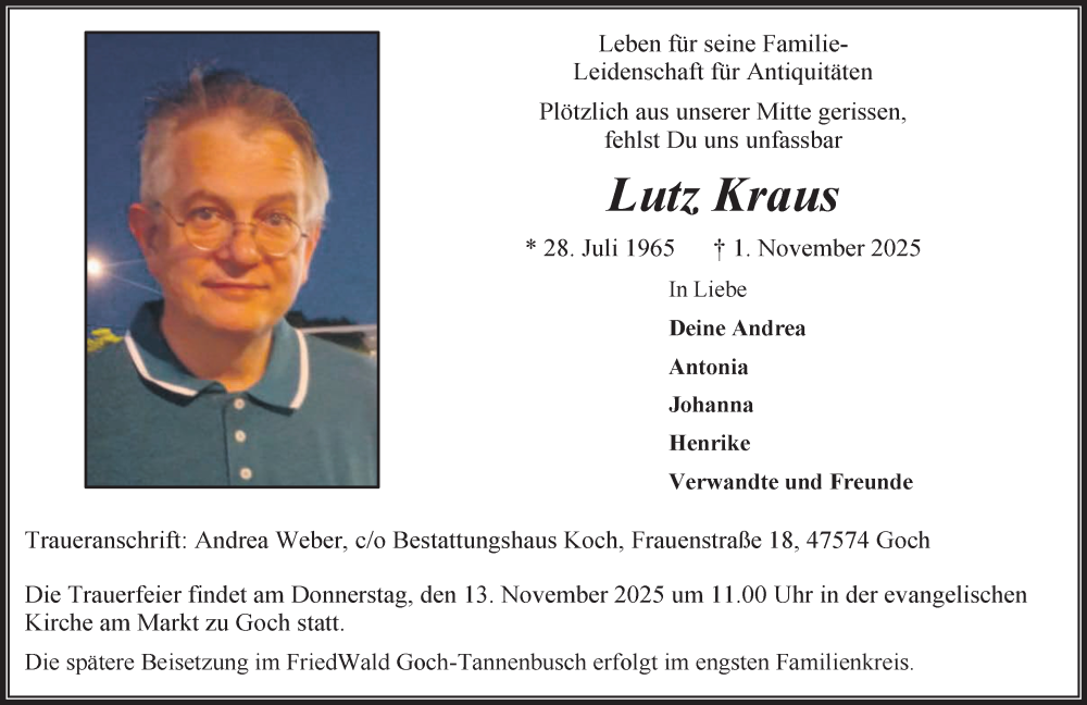 Hier finden Sie alle Traueranzeigen aus der Zeitung, die bisher für Lutz Kraus erschienen sind. Weitere Traueranzeigen, die in der Zeitung erscheinen, werden hier ebenfalls aufgelistet