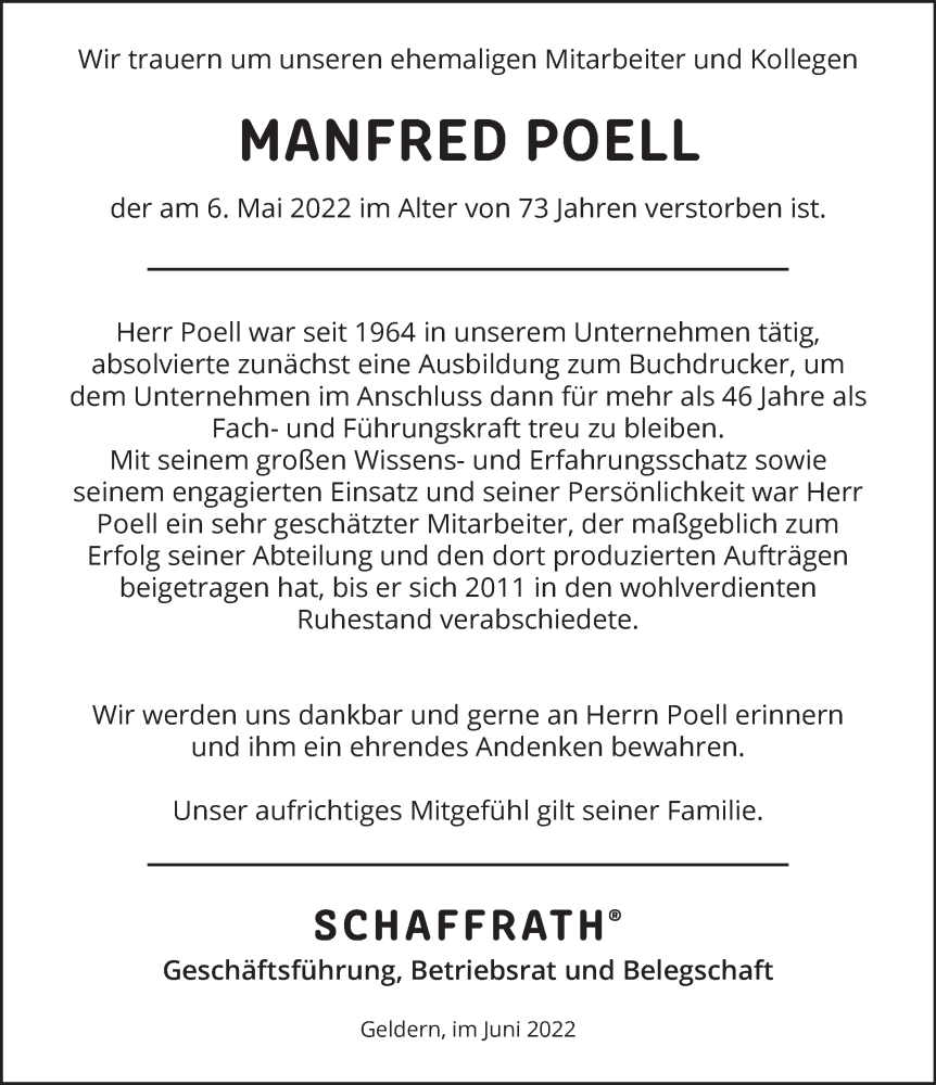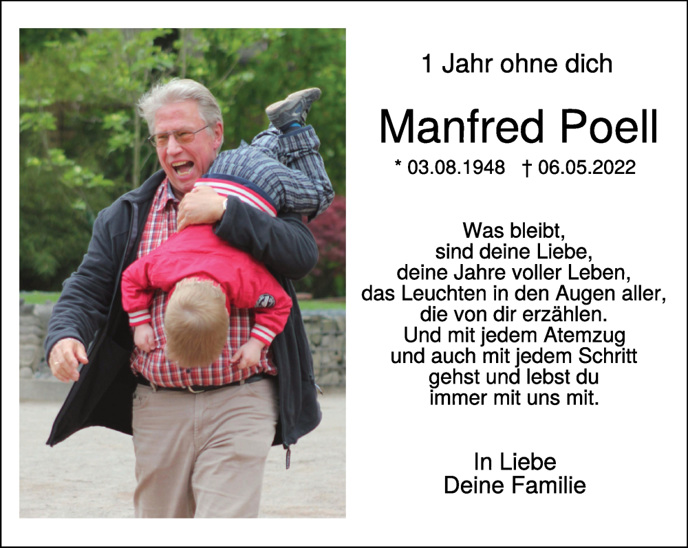 Hier finden Sie alle Traueranzeigen aus der Zeitung, die bisher für Manfred Poell erschienen sind. Weitere Traueranzeigen, die in der Zeitung erscheinen, werden hier ebenfalls aufgelistet